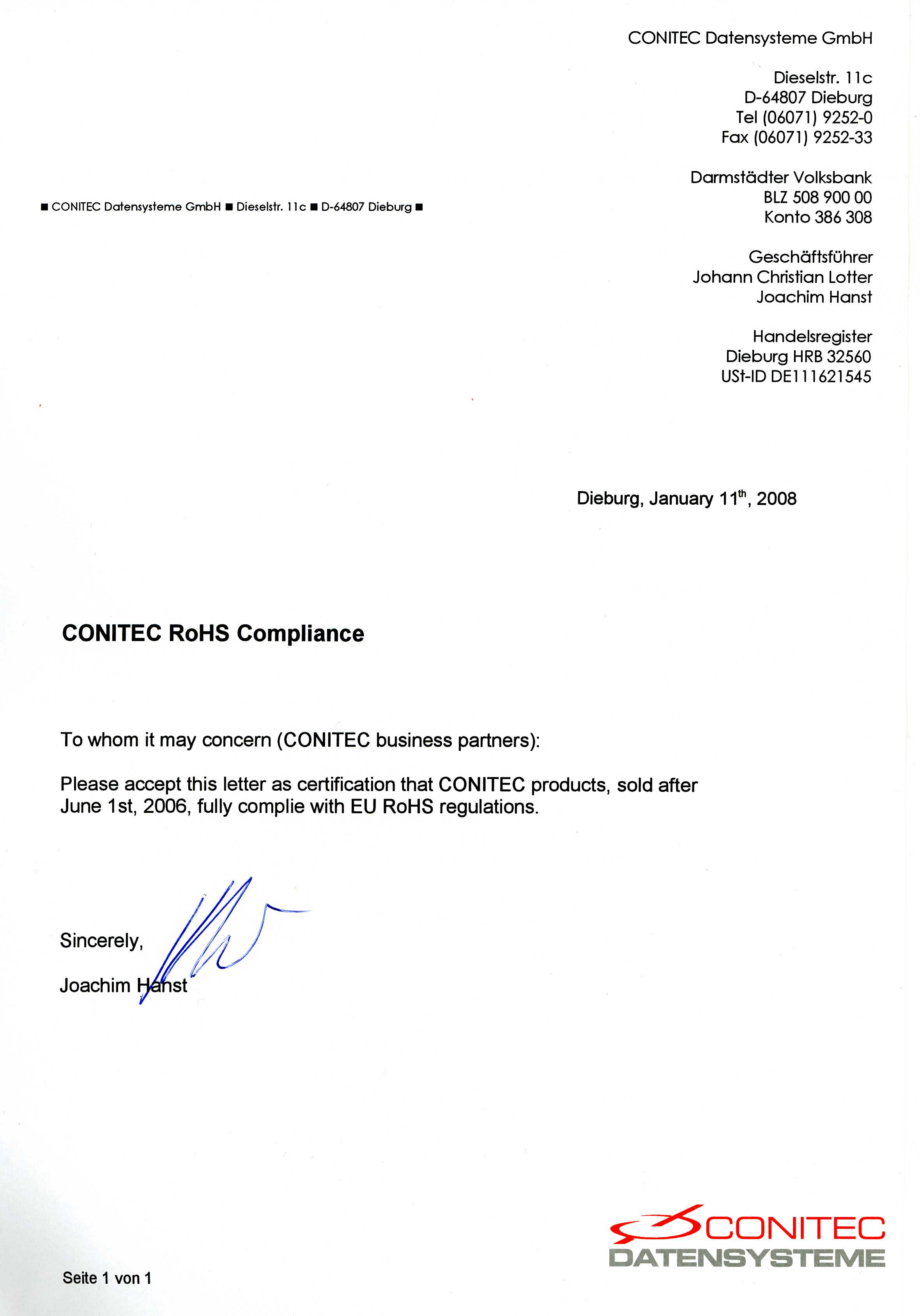 | RoHS Compliance Certification |